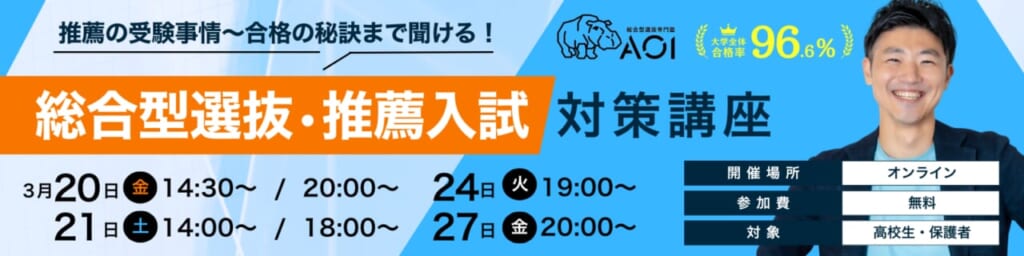 ぜひ春休みにこの講座に参加して、総合型選抜受験の最新情報をキャッチしていってください!
