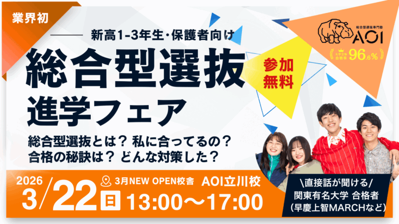 【対面イベント】業界初!総合型選抜進学フェア @AOI立川校 ~合格者が合格の”ヒミツ”を教えます!~
