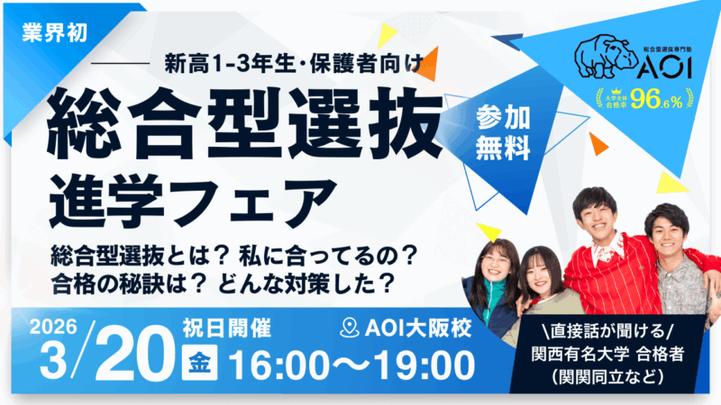 【新高1~高3対象・無料】関西の有名大学合格者と”直接”話せる!業界初、総合型選抜進学フェア@大阪校開催