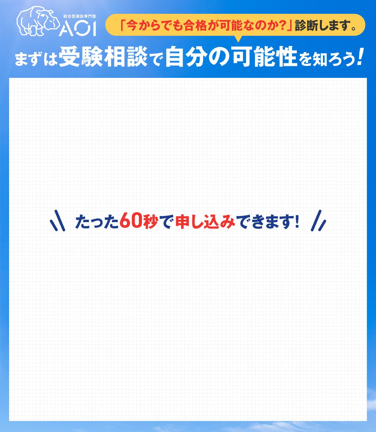 受験は、自分を見つめ直す最高のタイミングです。大学合格だけではなく、子どもの可能性を拓くことがAOIの強みです。お子さまが人生を自分ごととして考え、一人の人間として成長すること、そして「AOIと出会えて良かった」と思って頂けることをお約束します。